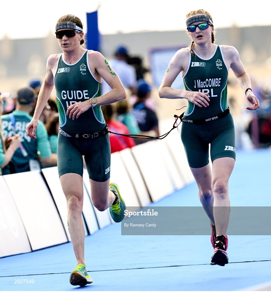2 September 2024; Judith MacCombe, right, and guide Eimear Nicholls of Ireland in action during the women's PTVI race on day five of the Paris 2024 Paralympic Games at Pont Alexandre III in Paris, France. Photo by Ramsey Cardy/Sportsfile