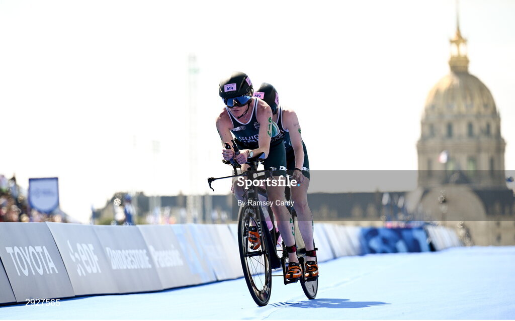2 September 2024; Judith MacCombe, right, and guide Eimear Nicholls of Ireland in action during the women's PTVI race on day five of the Paris 2024 Paralympic Games at Pont Alexandre III in Paris, France. Photo by Ramsey Cardy/Sportsfile