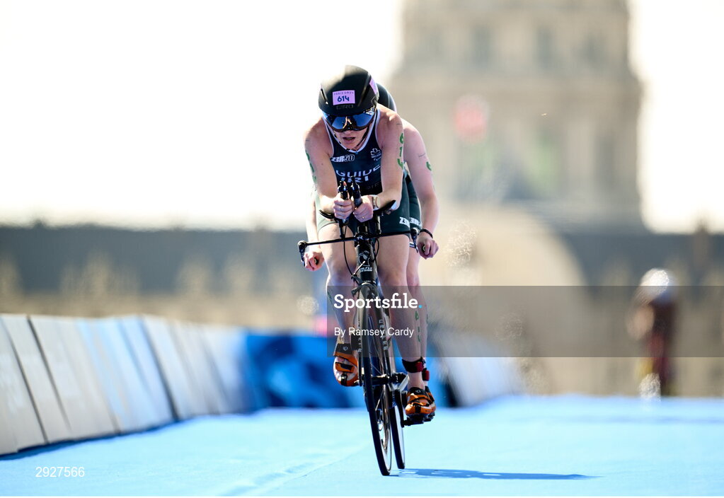 2 September 2024; Judith MacCombe, obscured, and guide Eimear Nicholls of Ireland in action during the women's PTVI race on day five of the Paris 2024 Paralympic Games at Pont Alexandre III in Paris, France. Photo by Ramsey Cardy/Sportsfile