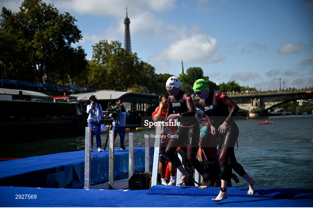 2 September 2024; Judith MacCombe, right, and guide Eimear Nicholls of Ireland in action during the women's PTVI race on day five of the Paris 2024 Paralympic Games at Pont Alexandre III in Paris, France. Photo by Ramsey Cardy/Sportsfile