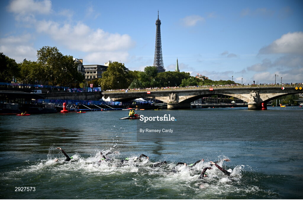 2 September 2024; A general view of athletes in action during the women's PTVI race on day five of the Paris 2024 Paralympic Games at Pont Alexandre III in Paris, France. Photo by Ramsey Cardy/Sportsfile