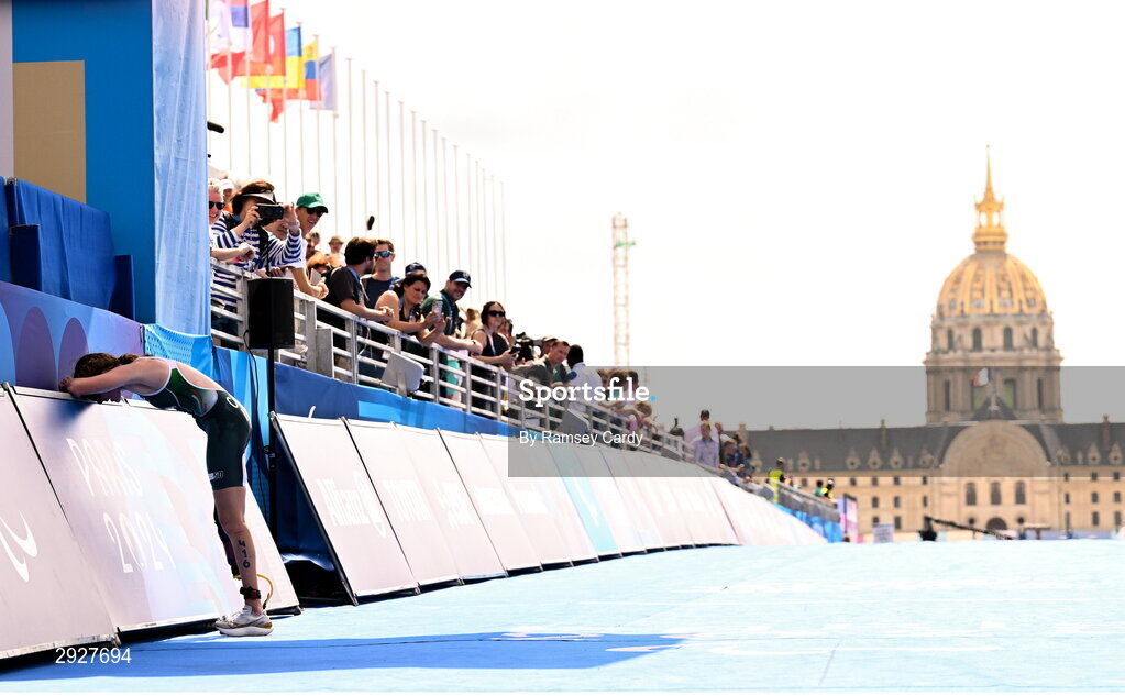 2 September 2024; Cassie Cava of Ireland after finishing the women's PTS4 race on day five of the Paris 2024 Paralympic Games at Pont Alexandre III in Paris, France. Photo by Ramsey Cardy/Sportsfile