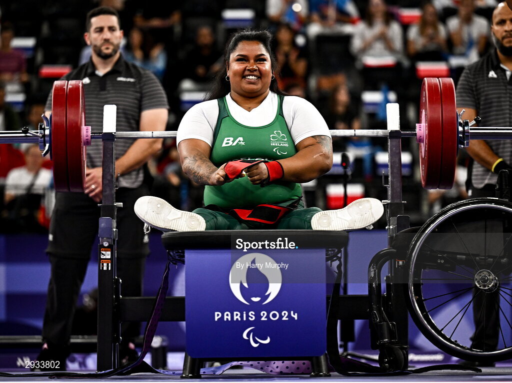 7 September 2024; Britney Arendse of Ireland during the women's 79kg final on day ten of the Paris 2024 Paralympic Games at Porte de la Chapelle Arena in Paris, France. Photo by Harry Murphy/Sportsfile