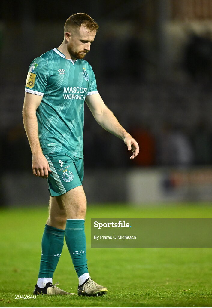 16 September 2024; Sean Hoare of Shamrock Rovers, who was substituted due to injury in the second half, leaves the pitch after his side's victory in the SSE Airtricity Men's Premier Division match between Galway United and Shamrock Rovers at Eamonn Deacy Park in Galway. Photo by Piaras Ó Mídheach/Sportsfile