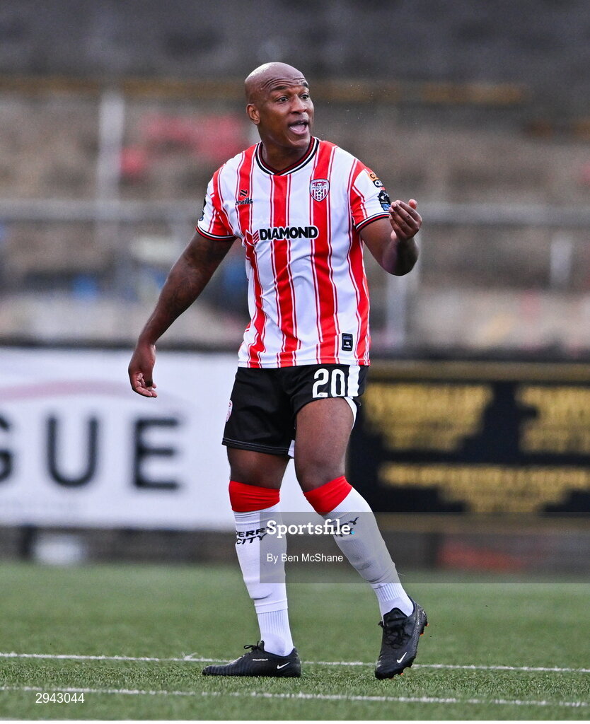 14 September 2024; Andre Wisdom of Derry City during the Sports Direct Men's FAI Cup Quarter Final match between Derry City and Shelbourne at the The Ryan McBride Brandywell Stadium in Derry. Photo by Ben McShane/Sportsfile