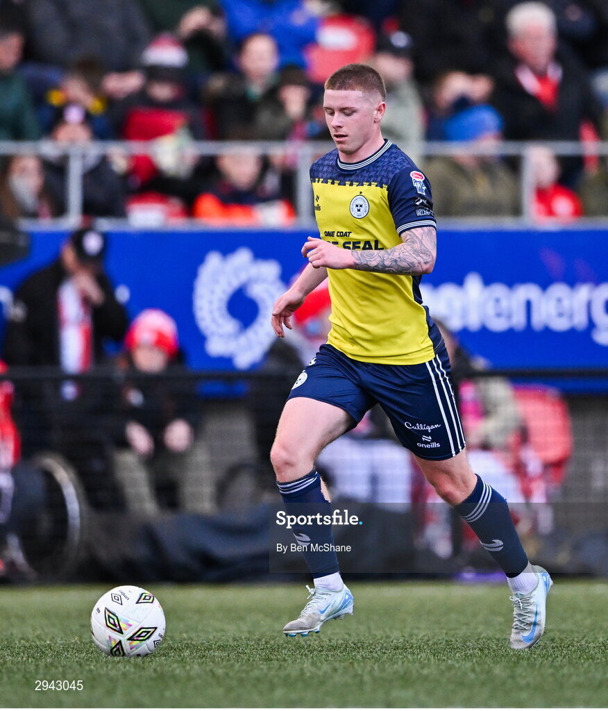14 September 2024; Kameron Ledwidge of Shelbourne during the Sports Direct Men's FAI Cup Quarter Final match between Derry City and Shelbourne at the The Ryan McBride Brandywell Stadium in Derry. Photo by Ben McShane/Sportsfile