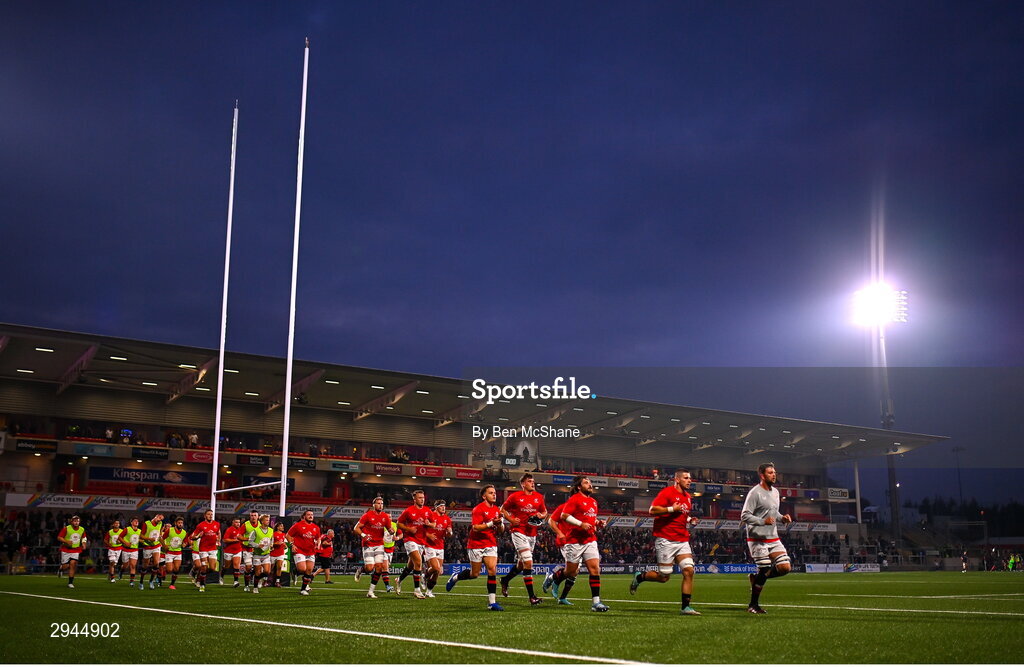 21 September 2024; Ulster captain Iain Henderson leads his side around the pitch before the United Rugby Championship match between Ulster and Glasgow Warriors at The Kingspan Stadium in Belfast. Photo by Ben McShane/Sportsfile