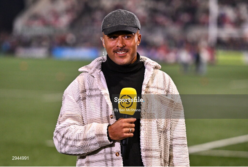 21 September 2024; Premier Sports pundit Simon Zebo at half-time of the United Rugby Championship match between Ulster and Glasgow Warriors at The Kingspan Stadium in Belfast. Photo by Ben McShane/Sportsfile