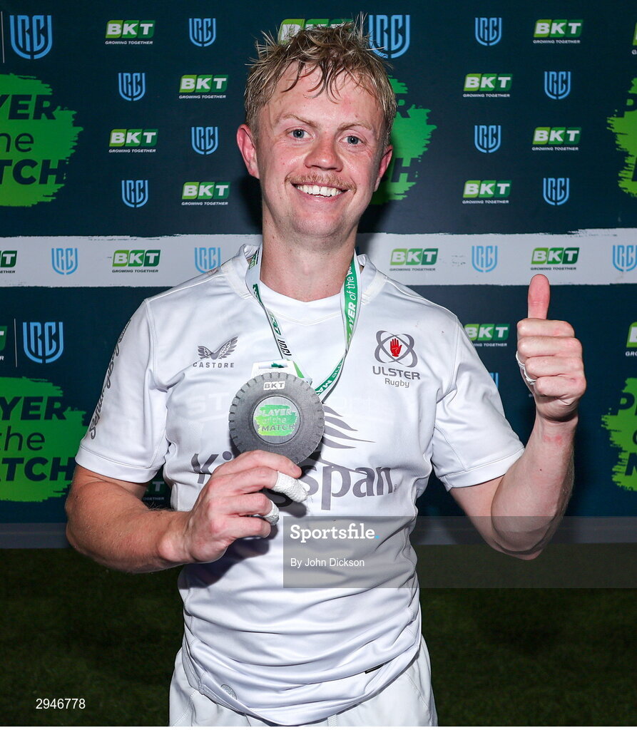 21 September 2024; Player of the match David Shanahan of Ulster after the United Rugby Championship match between Ulster and Glasgow Warriors at The Kingspan Stadium in Belfast. Photo by John Dickson/Sportsfile