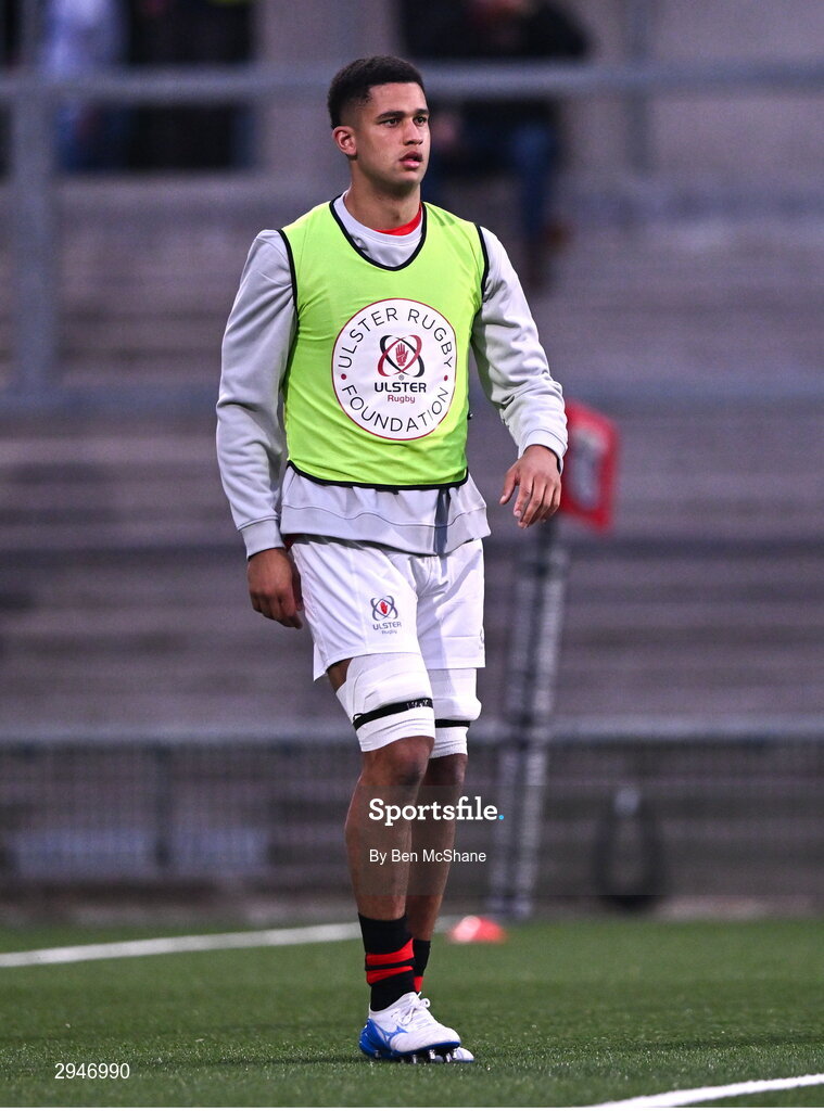21 September 2024; Cormac Izuchukwu of Ulster before the United Rugby Championship match between Ulster and Glasgow Warriors at The Kingspan Stadium in Belfast. Photo by Ben McShane/Sportsfile