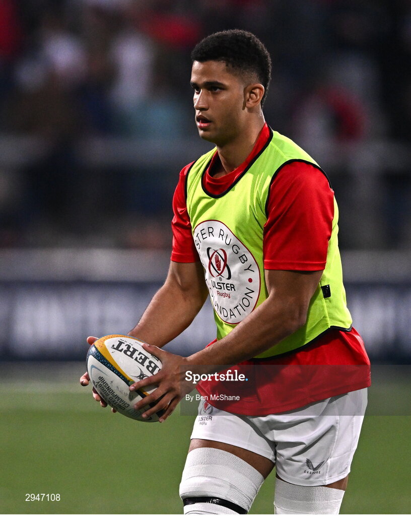 21 September 2024; Cormac Izuchukwu of Ulster before the United Rugby Championship match between Ulster and Glasgow Warriors at The Kingspan Stadium in Belfast. Photo by Ben McShane/Sportsfile