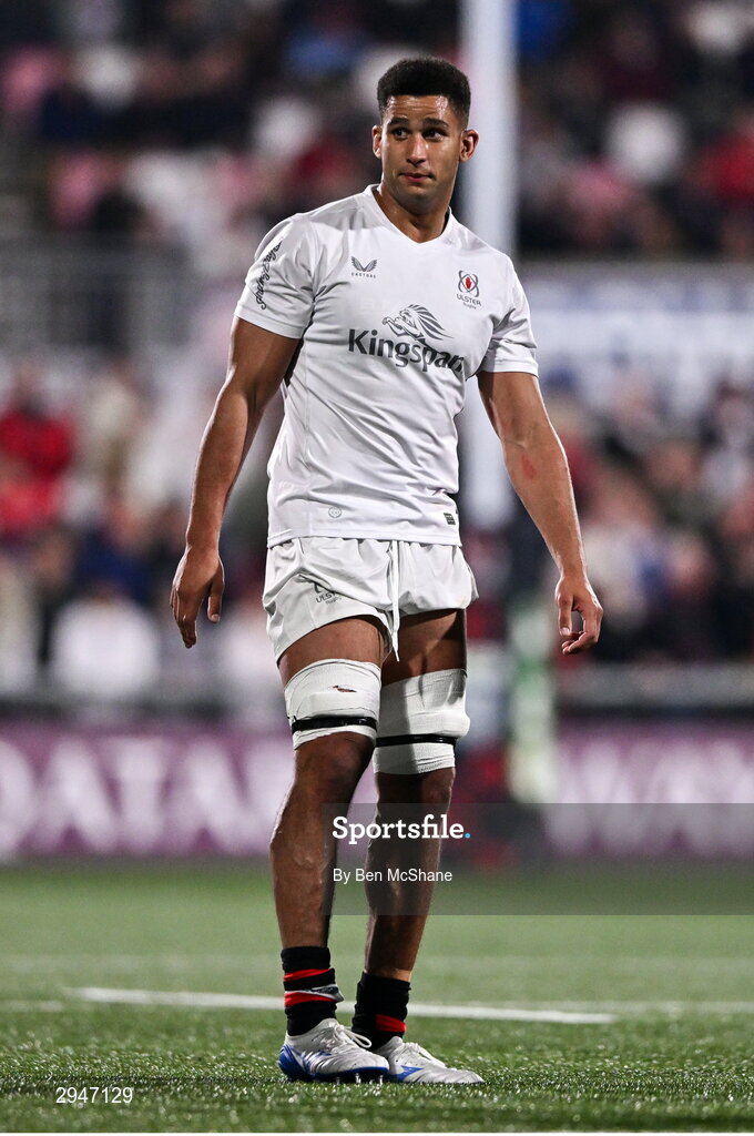 21 September 2024; Cormac Izuchukwu of Ulster during the United Rugby Championship match between Ulster and Glasgow Warriors at The Kingspan Stadium in Belfast. Photo by Ben McShane/Sportsfile