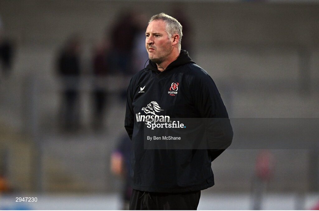 21 September 2024; Ulster coach Jimmy Duffy before the United Rugby Championship match between Ulster and Glasgow Warriors at Kingspan Stadium in Belfast. Photo by Ben McShane/Sportsfile