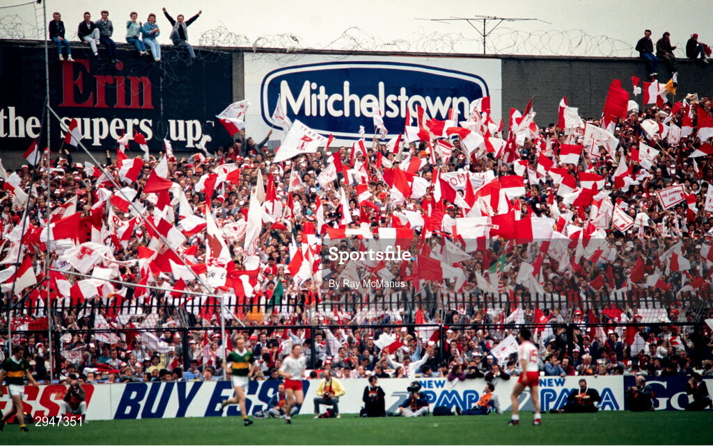 21 September 1986; Tyrone supporters during the All-Ireland Senior Football Championship final between Tyrone and Kerry at Croke Park in Dublin. Photo by Ray McManus/Sportsfile