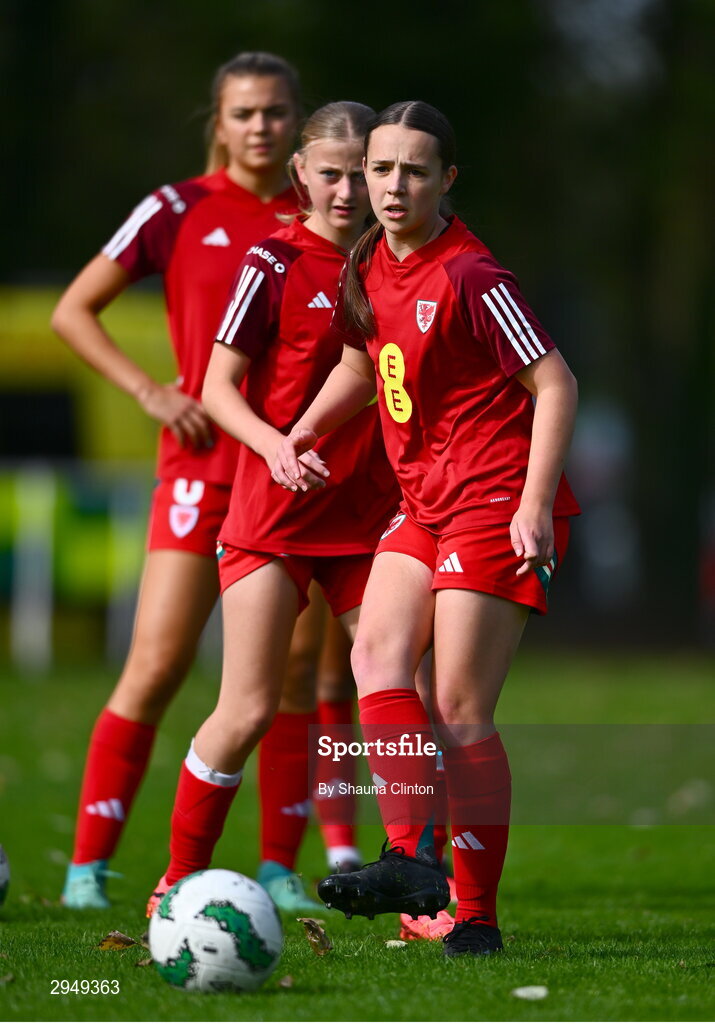 28 September 2024; Lois Cartmell of Cymru warms up before the women's U17 international friendly match between Republic of Ireland and Cymru at the AUL Complex in Clonsaugh, Dublin. Photo by Shauna Clinton/Sportsfile