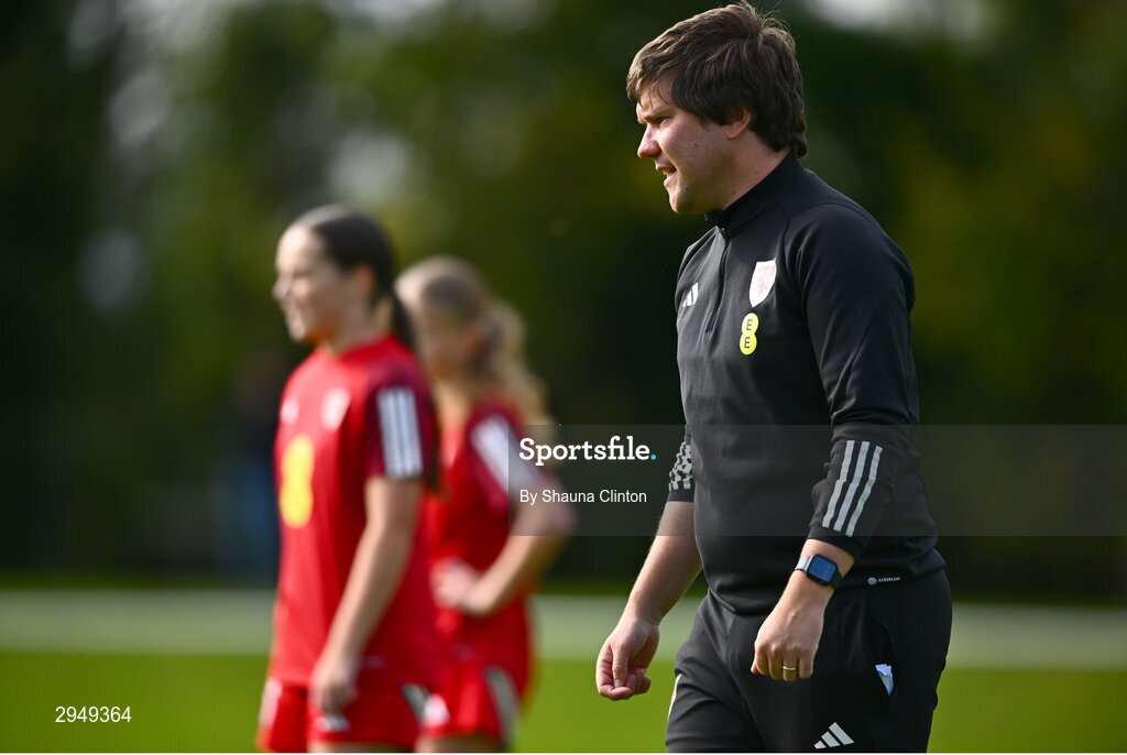 28 September 2024; Cymru head coach Peter Wilson lookson during the warm-up before the women's U17 international friendly match between Republic of Ireland and Cymru at the AUL Complex in Clonsaugh, Dublin. Photo by Shauna Clinton/Sportsfile