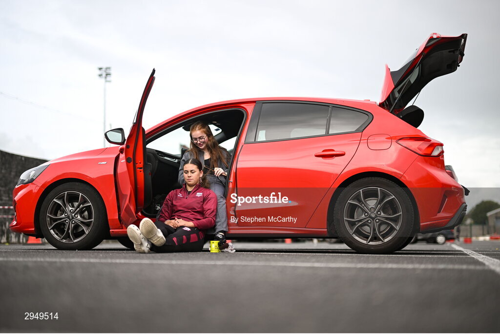 28 September 2024; Jenna Slattery of Galway United has her hair prepped by Alannah Galligan before the SSE Airtricity Women's Premier Division match between Galway United and Shelbourne at Eamonn Deacy Park in Galway. Photo by Stephen McCarthy/Sportsfile