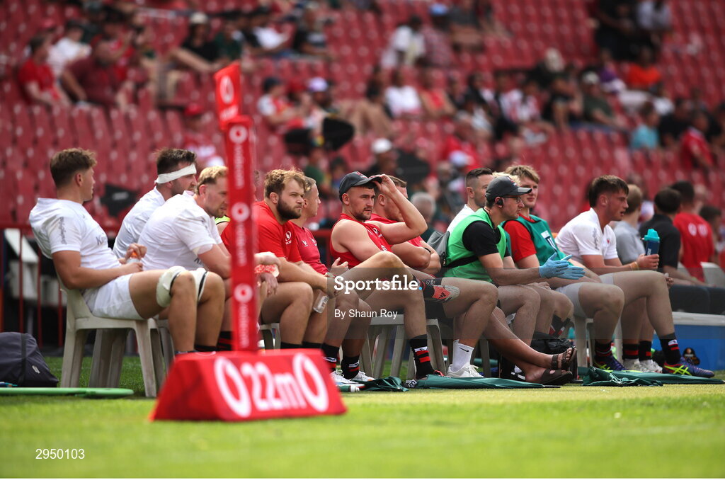 28 September 2024; The Ulster bench during the United Rugby Championship match between Emirates Lions and Ulster at Emirates Airline Park in Johannesburg, South Africa. Photo by Shaun Roy/Sportsfile