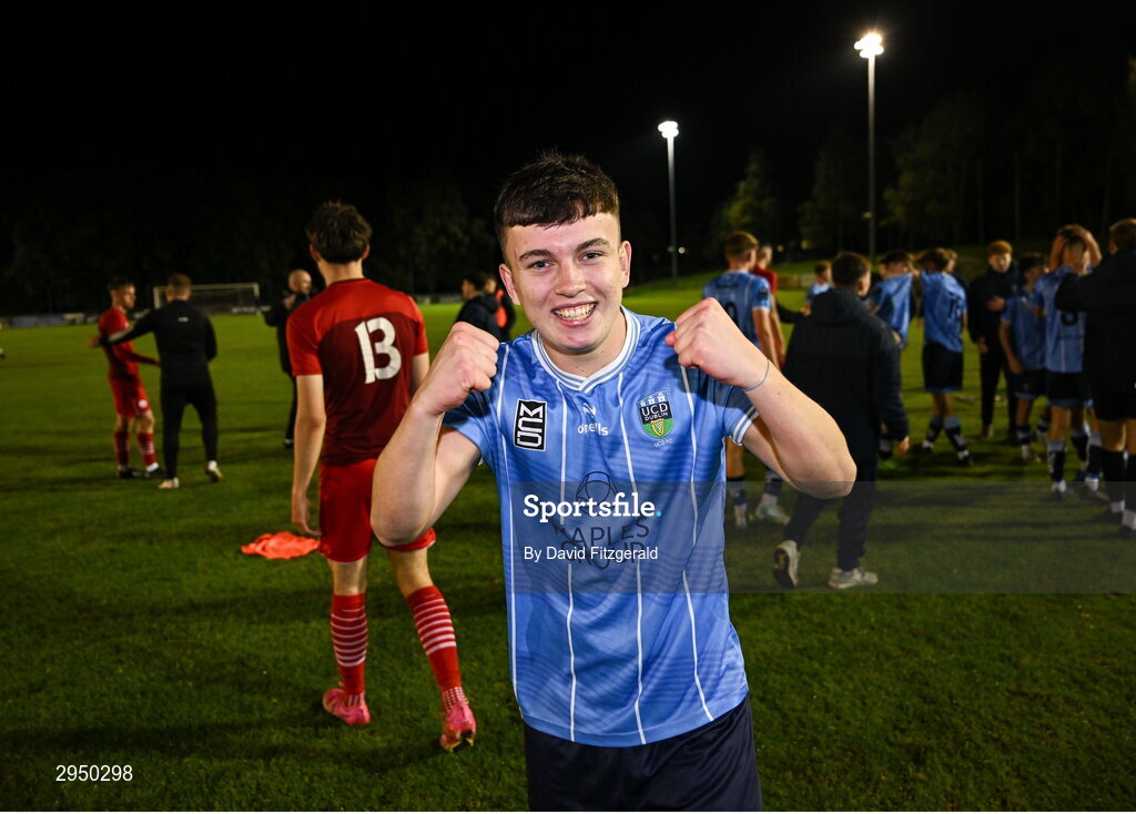 28 September 2024; Max Mason of UCD celebrates after the EA SPORTS MU20 League of Ireland Enda McGuill Cup final match between UCD and Sligo Rovers at UCD Bowl in Belfield, Dublin. Photo by David Fitzgerald/Sportsfile