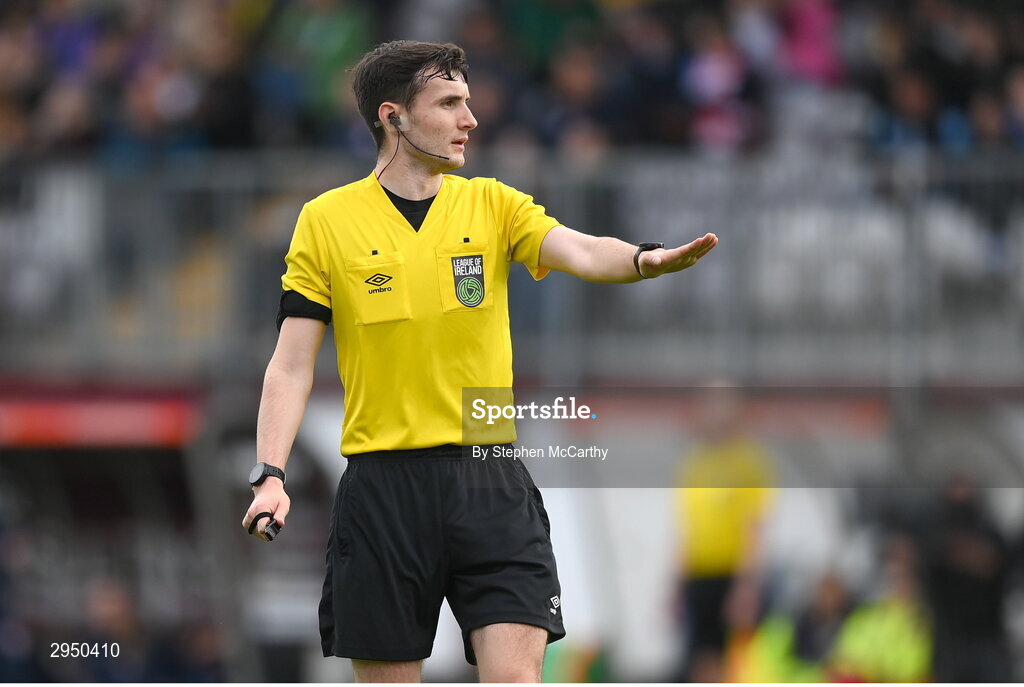 28 September 2024; Referee Ryan Maher during the SSE Airtricity Women's Premier Division match between Galway United and Shelbourne at Eamonn Deacy Park in Galway. Photo by Stephen McCarthy/Sportsfile