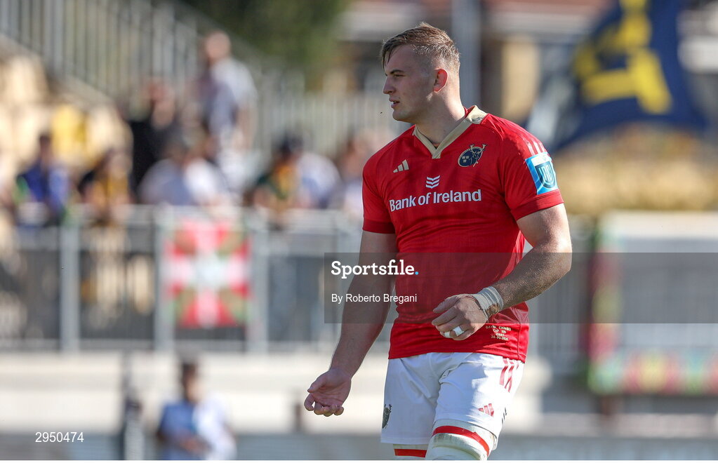 28 September 2024; Gavin Coombes of Munster during the United Rugby Championship match between Zebre Parma and Munster at Stadio Sergio Lanfranchi in Parma, Italy. Photo by Roberto Bregani/Sportsfile
