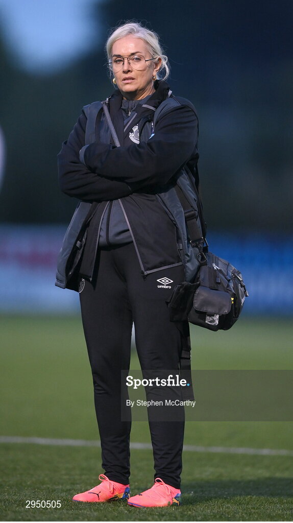 28 September 2024; Shamrock Rovers physiotherapist Donna Power before the SSE Airtricity Women's Premier Division match between Athlone Town and Shamrock Rovers at Athlone Town Stadium in Westmeath. Photo by Stephen McCarthy/Sportsfile