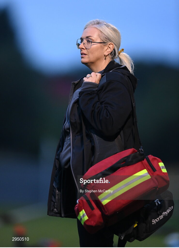28 September 2024; Shamrock Rovers physiotherapist Donna Power before the SSE Airtricity Women's Premier Division match between Athlone Town and Shamrock Rovers at Athlone Town Stadium in Westmeath. Photo by Stephen McCarthy/Sportsfile