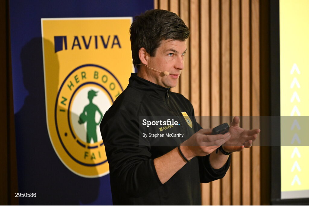 29 September 2024; Republic of Ireland women's team nutritionist Dr Brendan Egan during the launch of the In Her Boots programme at the Aviva Stadium in Dublin. In Her Boots programme is an education and awareness-based programme aimed at the football volunteer workforce across Ireland working with female players (9-16years). The programme will focus on topics that are vital for the participation and retention of young female players in football across Ireland. This new approach to female player development, celebrates and informs all levels of your club on a national scale. Photo by Stephen McCarthy/Sportsfile