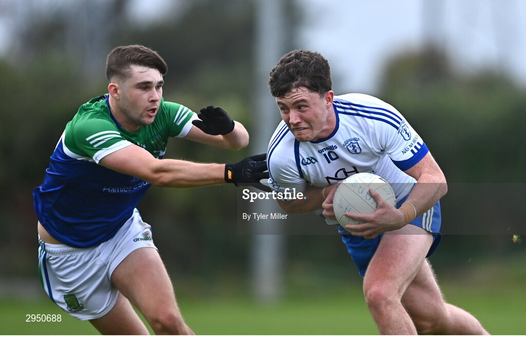 29 September 2024; Alex Beirne of Naas in action against Shane Flynn of Johnstownbridge during the Kildare County Senior Club Football Championship quarter-final match between Naas and Johnstownbridge at Manguard Park Hawkfield in Newbridge, Kildare. Photo by Tyler Miller/Sportsfile