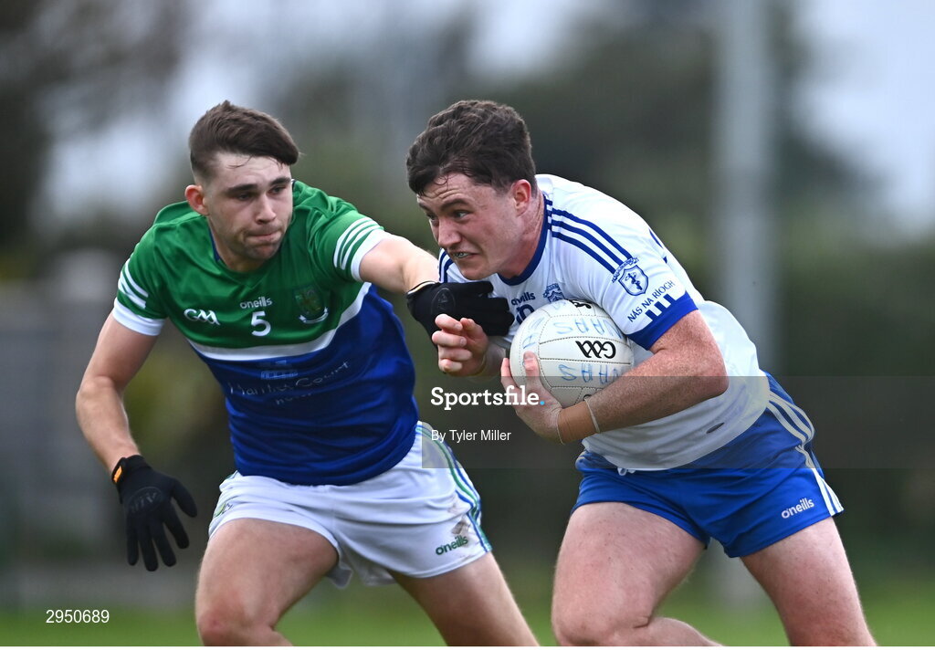 29 September 2024; Alex Beirne of Naas in action against Shane Flynn of Johnstownbridge during the Kildare County Senior Club Football Championship quarter-final match between Naas and Johnstownbridge at Manguard Park Hawkfield in Newbridge, Kildare. Photo by Tyler Miller/Sportsfile