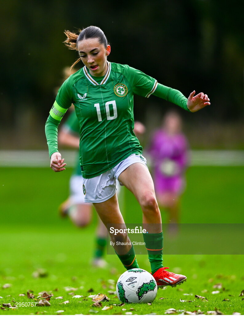 28 September 2024; Ella Kelly of Republic of Ireland during the women's U17 international friendly match between Republic of Ireland and Cymru at the AUL Complex in Clonsaugh, Dublin. Photo by Shauna Clinton/Sportsfile