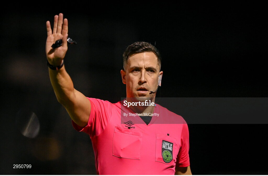 28 September 2024; Referee Glen Geraghty during the SSE Airtricity Women's Premier Division match between Athlone Town and Shamrock Rovers at Athlone Town Stadium in Westmeath. Photo by Stephen McCarthy/Sportsfile