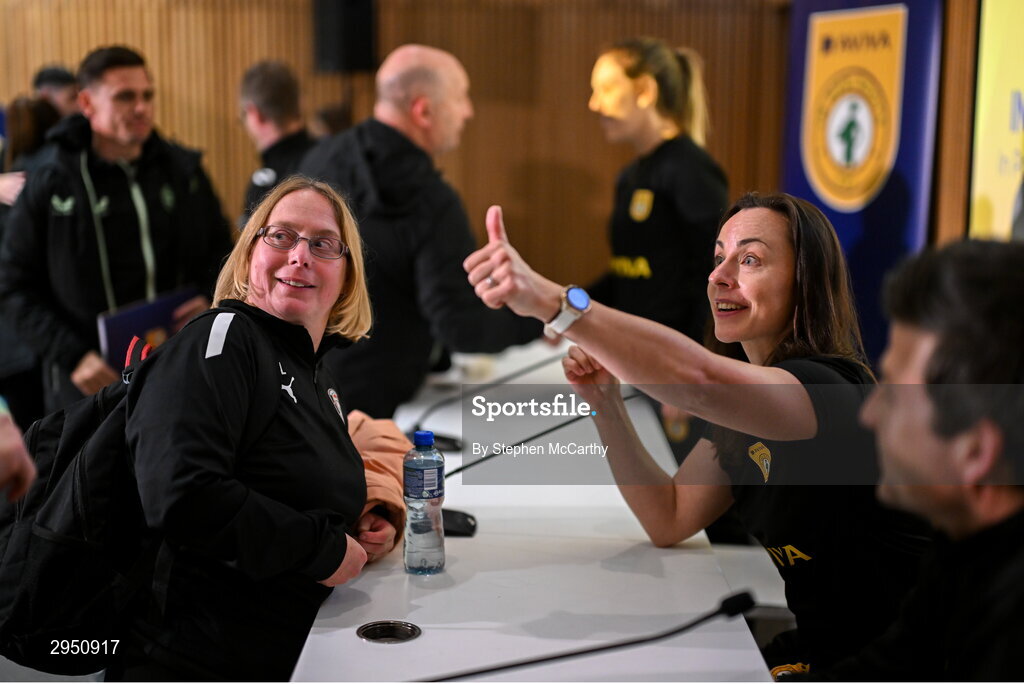 29 September 2024; Republic of Ireland women's team physiotherapist Angela Kenneally during the launch of the In Her Boots programme at the Aviva Stadium in Dublin. In Her Boots programme is an education and awareness-based programme aimed at the football volunteer workforce across Ireland working with female players (9-16years). The programme will focus on topics that are vital for the participation and retention of young female players in football across Ireland. This new approach to female player development, celebrates and informs all levels of your club on a national scale. Photo by Stephen McCarthy/Sportsfile