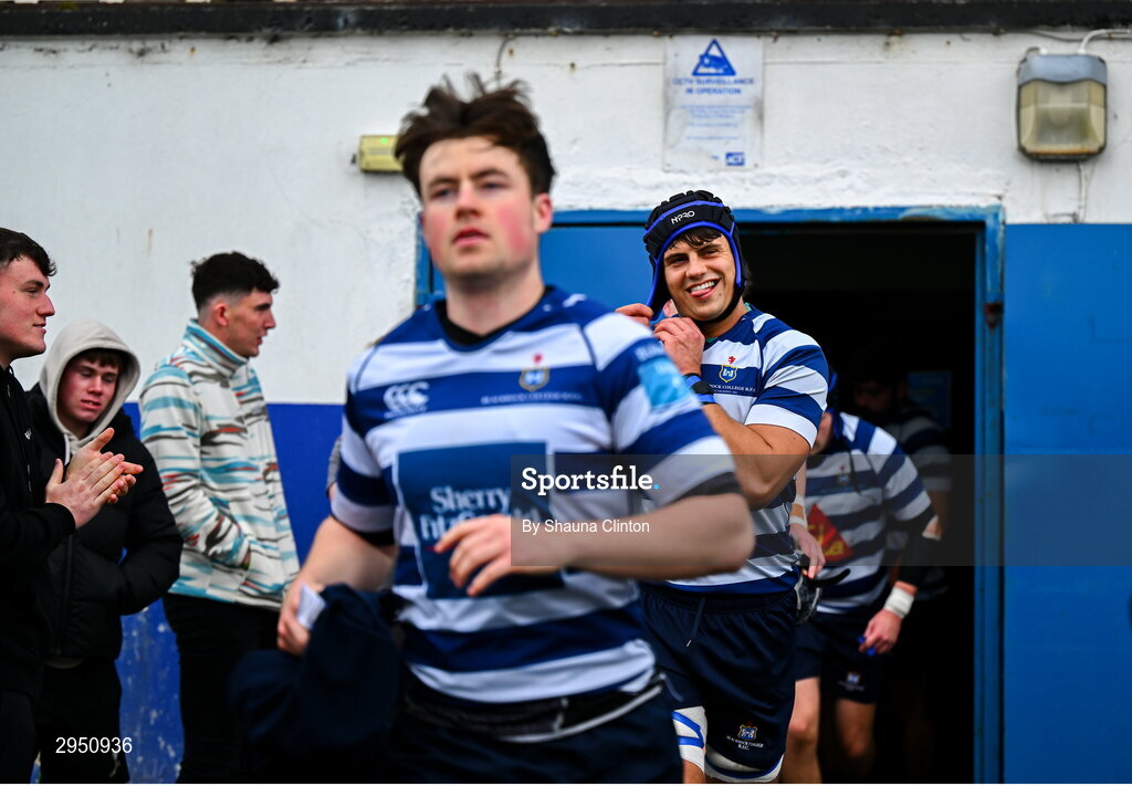 29 September 2024; Thomas Eggers of Blackrock runs out onto the pitch before the Bank of Ireland JP Fanagan Premier 1 qualifiers final match between Corinthians RFC and Blackrock College RFC at Corinthians RFC in Galway. Photo by Shauna Clinton/Sportsfile