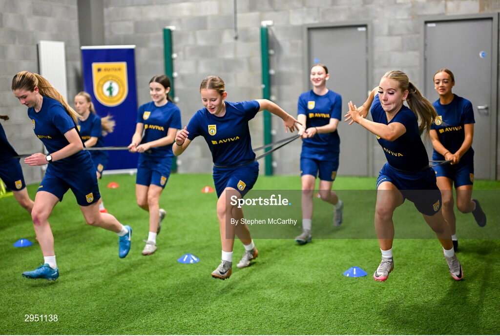 29 September 2024; Practical demonstrations with Republic of Ireland women's team performance coach Ivi Casagrande during the launch of the In Her Boots programme at the Aviva Stadium in Dublin. In Her Boots programme is an education and awareness-based programme aimed at the football volunteer workforce across Ireland working with female players (9-16years). The programme will focus on topics that are vital for the participation and retention of young female players in football across Ireland. This new approach to female player development, celebrates and informs all levels of your club on a national scale. Photo by Stephen McCarthy/Sportsfile