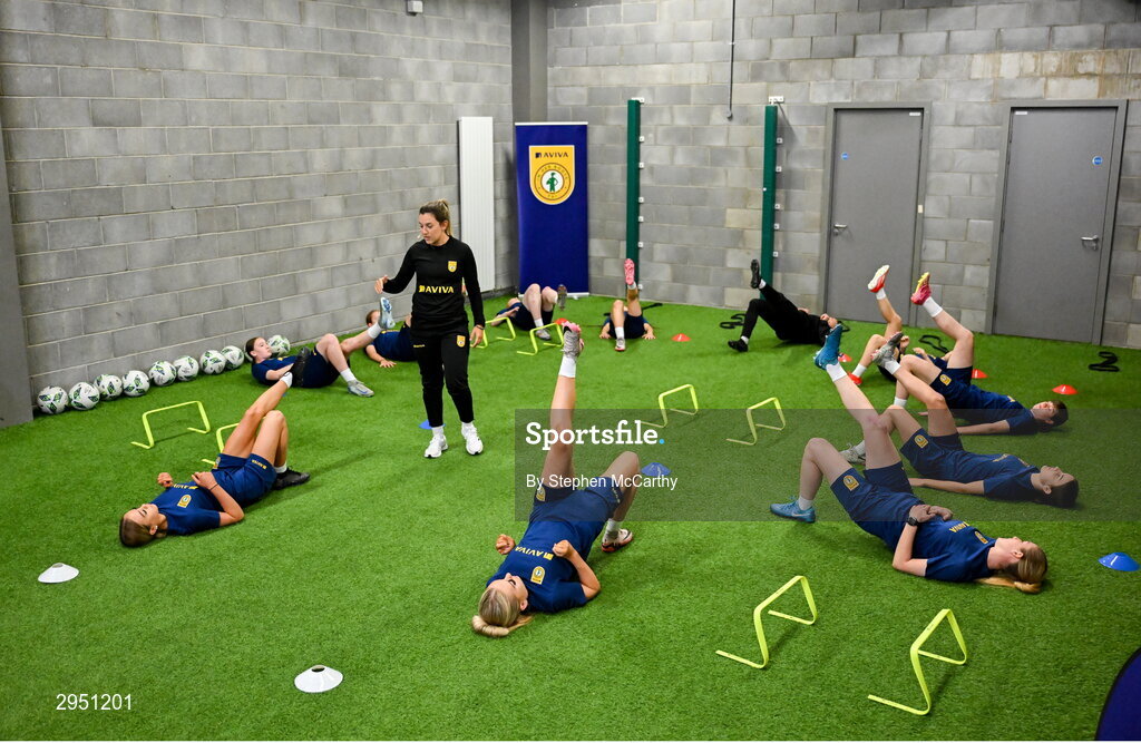 29 September 2024; Practical demonstrations with Republic of Ireland women's team performance coach Ivi Casagrande during the launch of the In Her Boots programme at the Aviva Stadium in Dublin. In Her Boots programme is an education and awareness-based programme aimed at the football volunteer workforce across Ireland working with female players (9-16years). The programme will focus on topics that are vital for the participation and retention of young female players in football across Ireland. This new approach to female player development, celebrates and informs all levels of your club on a national scale. Photo by Stephen McCarthy/Sportsfile