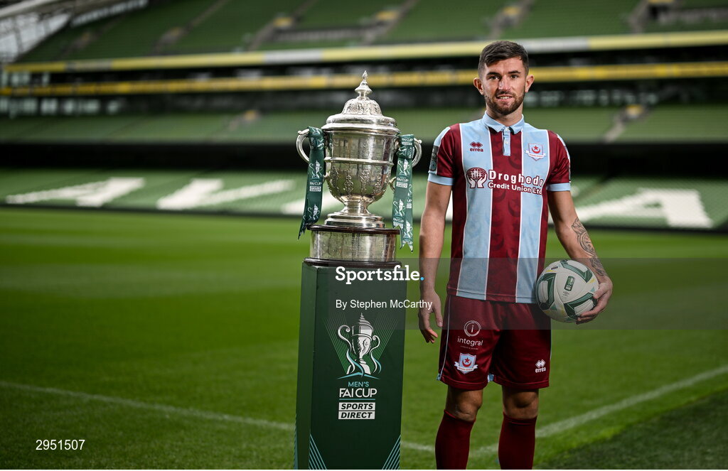 30 September 2024; Drogheda United's Luke Heeney poses for a portrait during the Sports Direct Men's FAI Cup semi-finals media day at the Aviva Stadium in Dublin. Photo by Stephen McCarthy/Sportsfile