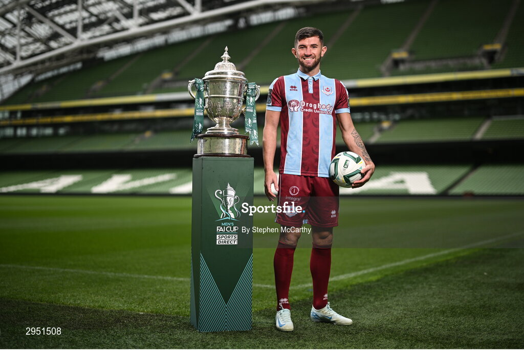 30 September 2024; Drogheda United's Luke Heeney poses for a portrait during the Sports Direct Men's FAI Cup semi-finals media day at the Aviva Stadium in Dublin. Photo by Stephen McCarthy/Sportsfile