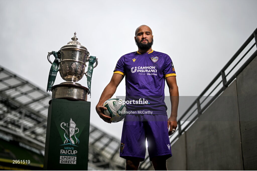 30 September 2024; Wexford's Ethan Boyle poses for a portrait during the Sports Direct Men's FAI Cup semi-finals media day at the Aviva Stadium in Dublin. Photo by Stephen McCarthy/Sportsfile