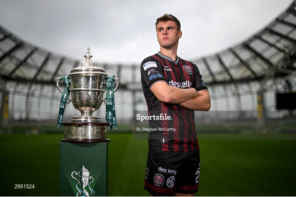 30 September 2024; Bohemians' Leigh Kavanagh poses for a portrait during the Sports Direct Men's FAI Cup semi-finals media day at the Aviva Stadium in Dublin. Photo by Stephen McCarthy/Sportsfile