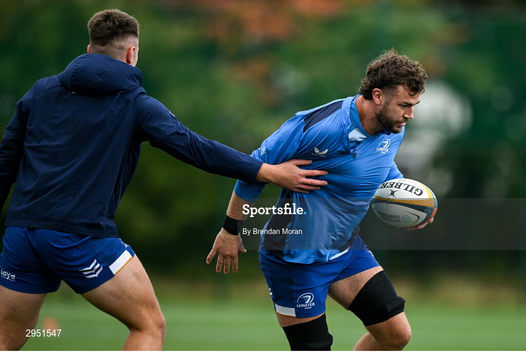 30 September 2024; Caelan Doris during Leinster rugby training at UCD in Dublin. Photo by Brendan Moran/Sportsfile