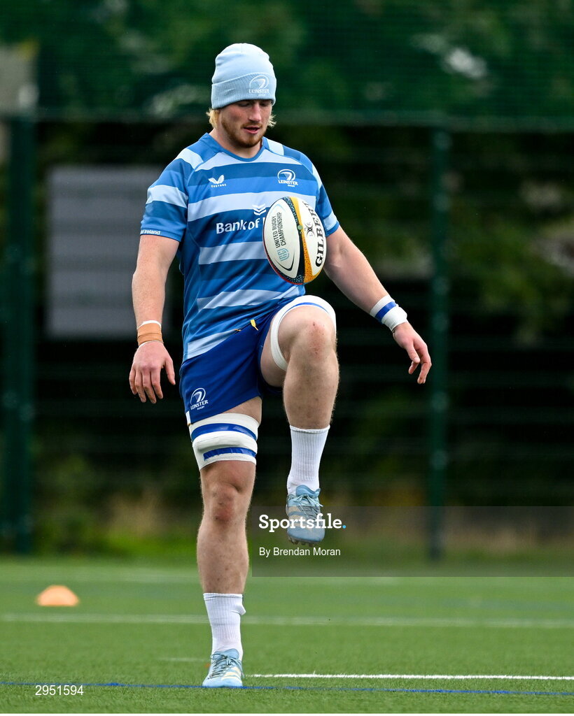 30 September 2024; Joe McCarthy during Leinster rugby training at UCD in Dublin. Photo by Brendan Moran/Sportsfile