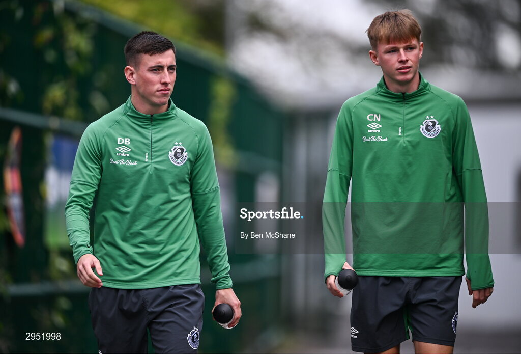 2 October 2024; Darragh Burns, left, and Conan Noonan before a Shamrock Rovers squad training session at the Roadstone Group Sports Club in Dublin. Photo by Ben McShane/Sportsfile