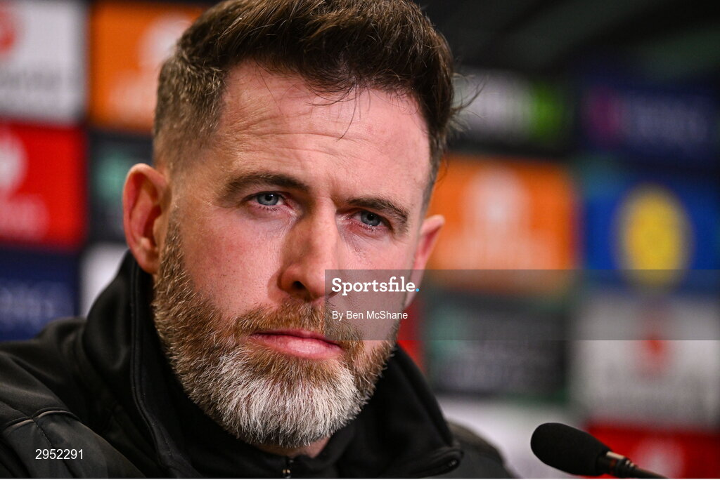 2 October 2024; Manager Stephen Bradley speaks to the media during a Shamrock Rovers press conference at Tallaght Stadium in Dublin Photo by Ben McShane/Sportsfile