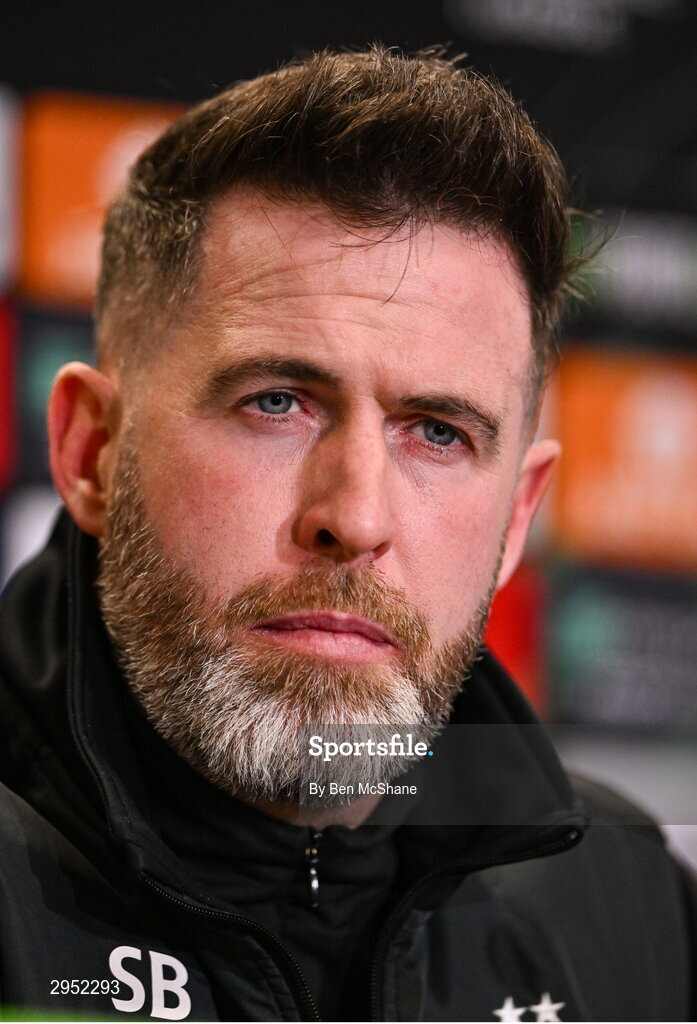 2 October 2024; Manager Stephen Bradley speaks to the media during a Shamrock Rovers press conference at Tallaght Stadium in Dublin Photo by Ben McShane/Sportsfile