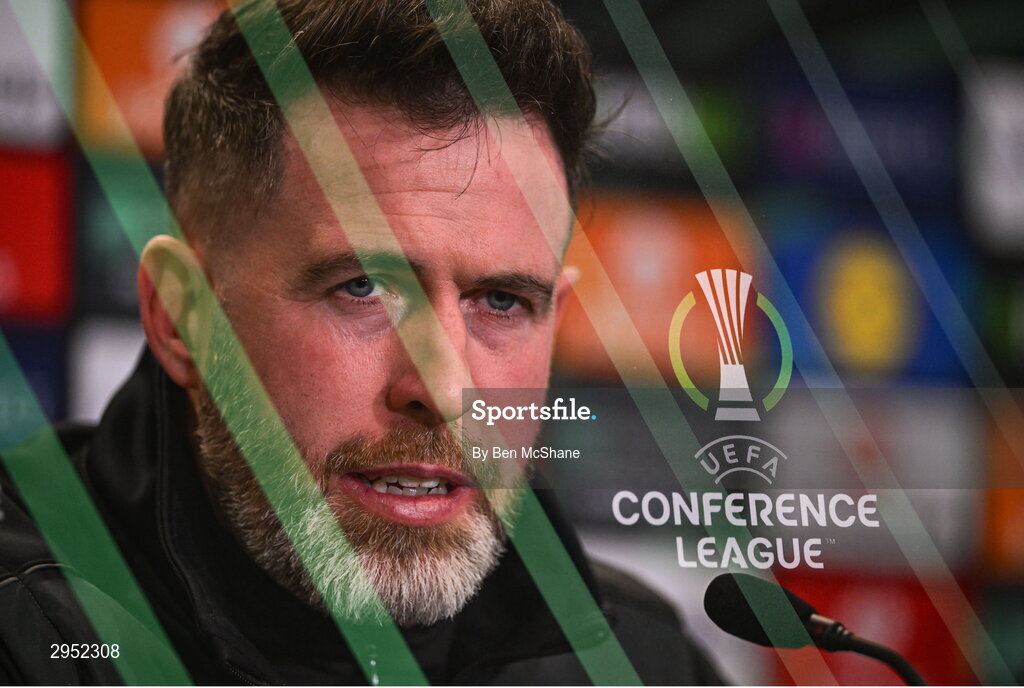 2 October 2024; (EDITORS NOTE: Image created using the multiple exposure function in camera) Manager Stephen Bradley speaks to the media during a Shamrock Rovers press conference at Tallaght Stadium in Dublin Photo by Ben McShane/Sportsfile