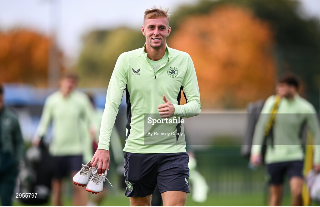 7 October 2024; Killian Phillips during a Republic of Ireland Under 21 training session at the FAI National Training Centre in Dublin. Photo by Ramsey Cardy/Sportsfile