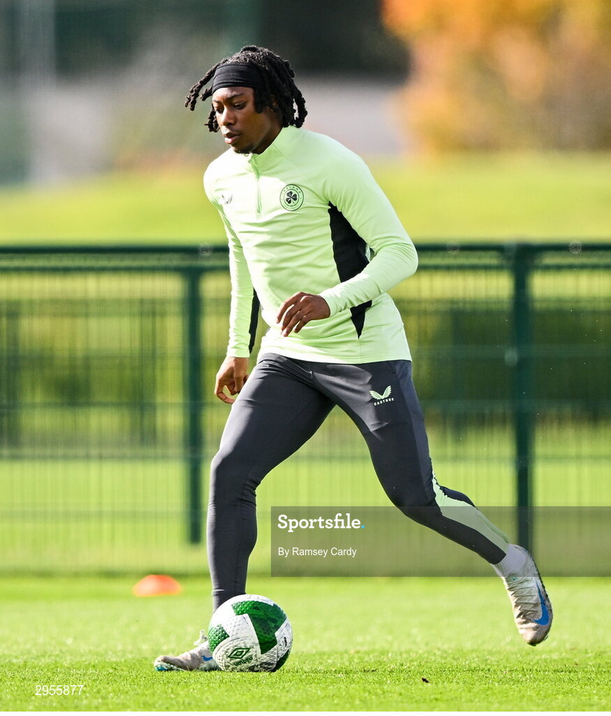 7 October 2024; Tayo Adaramola during a Republic of Ireland Under 21 training session at the FAI National Training Centre in Dublin. Photo by Ramsey Cardy/Sportsfile