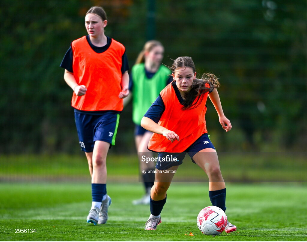 7 October 2024; Abigial Quinn, right, during the FAI/ Fingal Girls' TY Course at TUD in Blanchardstown, Dublin. Photo by Shauna Clinton/Sportsfile
