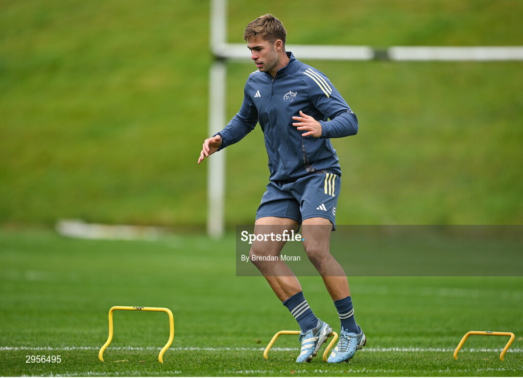 8 October 2024; Jack Crowley during Munster rugby squad training at University of Limerick in Limerick. Photo by Brendan Moran/Sportsfile